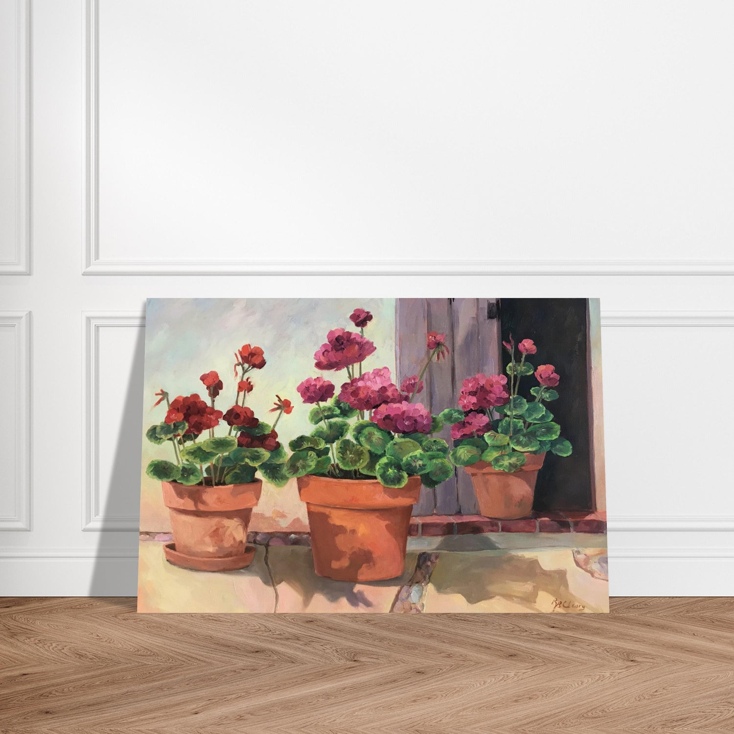 'Potted Geraniums Series 1' Floral I 16x16 inch Art Print on Canvas I Original Artwork by American Artist Barbara Cleary
