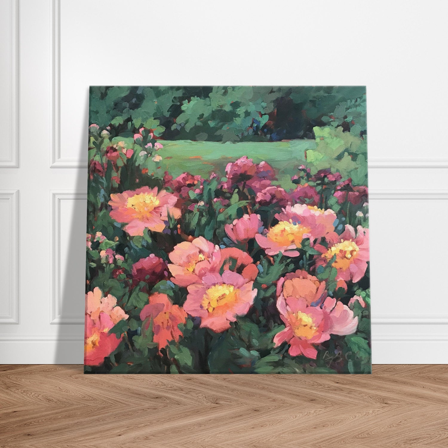 'Pink Princess' Floral I 16x16 inch Art Print on Canvas I Original Artwork by American Artist Barbara Cleary I F25