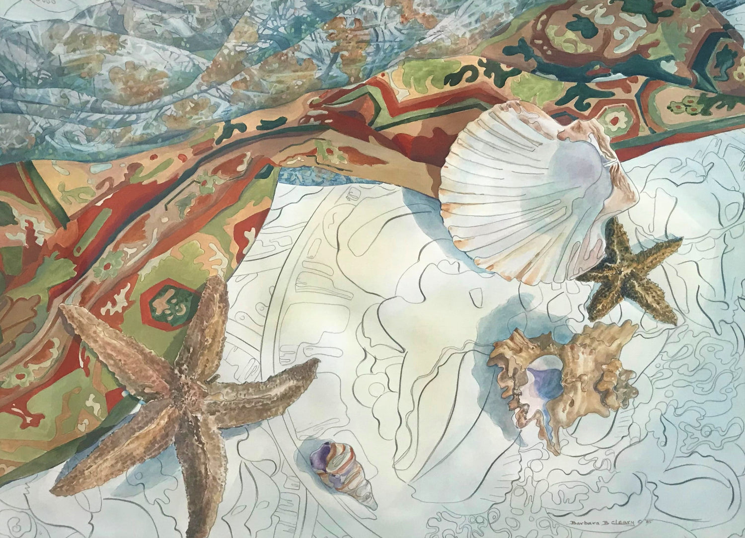 'Shells' Coastal Watercolor | 6x8, 8x12, or 12x16 Wooden Framed Art Print | Original Artwork by American Artist Barbara Cleary