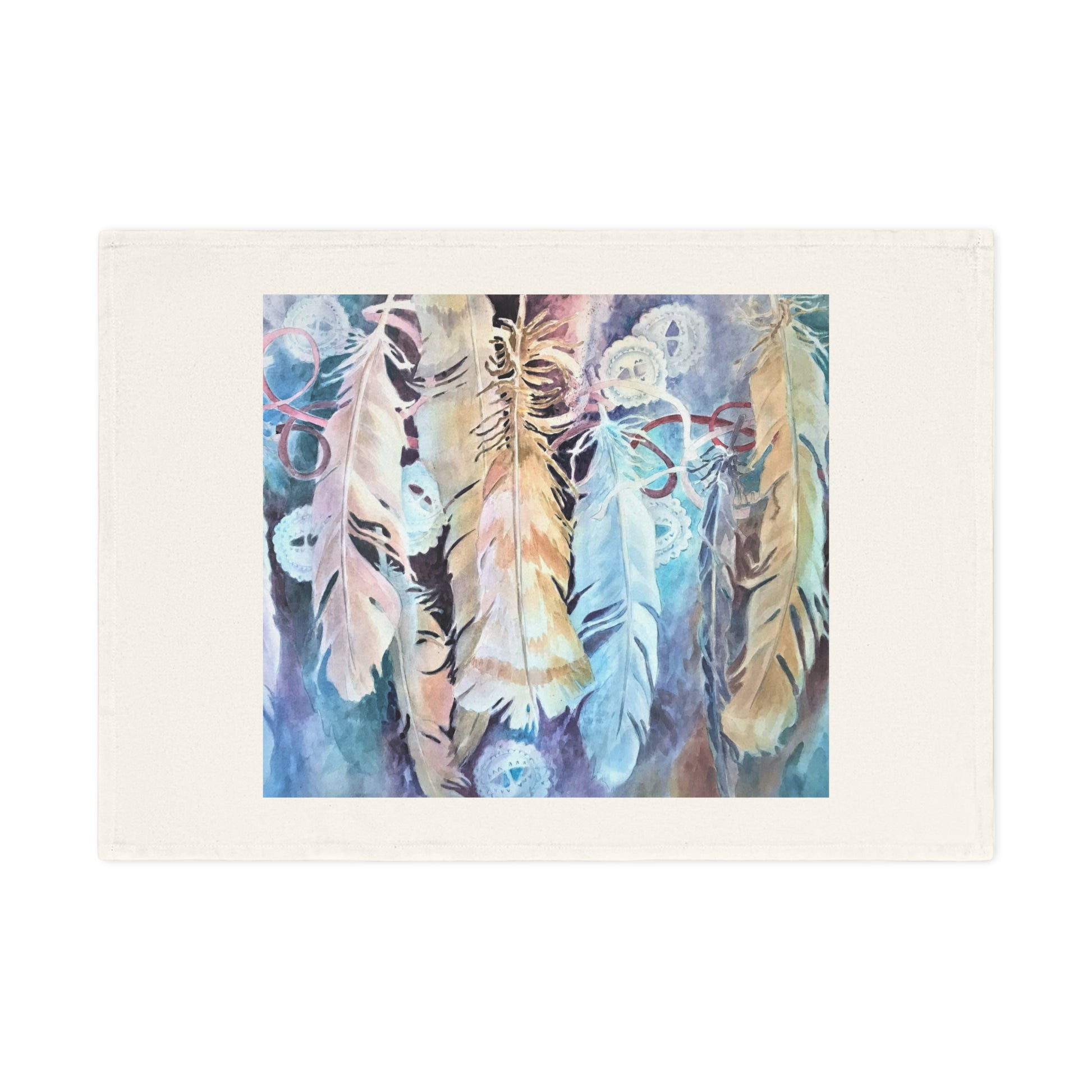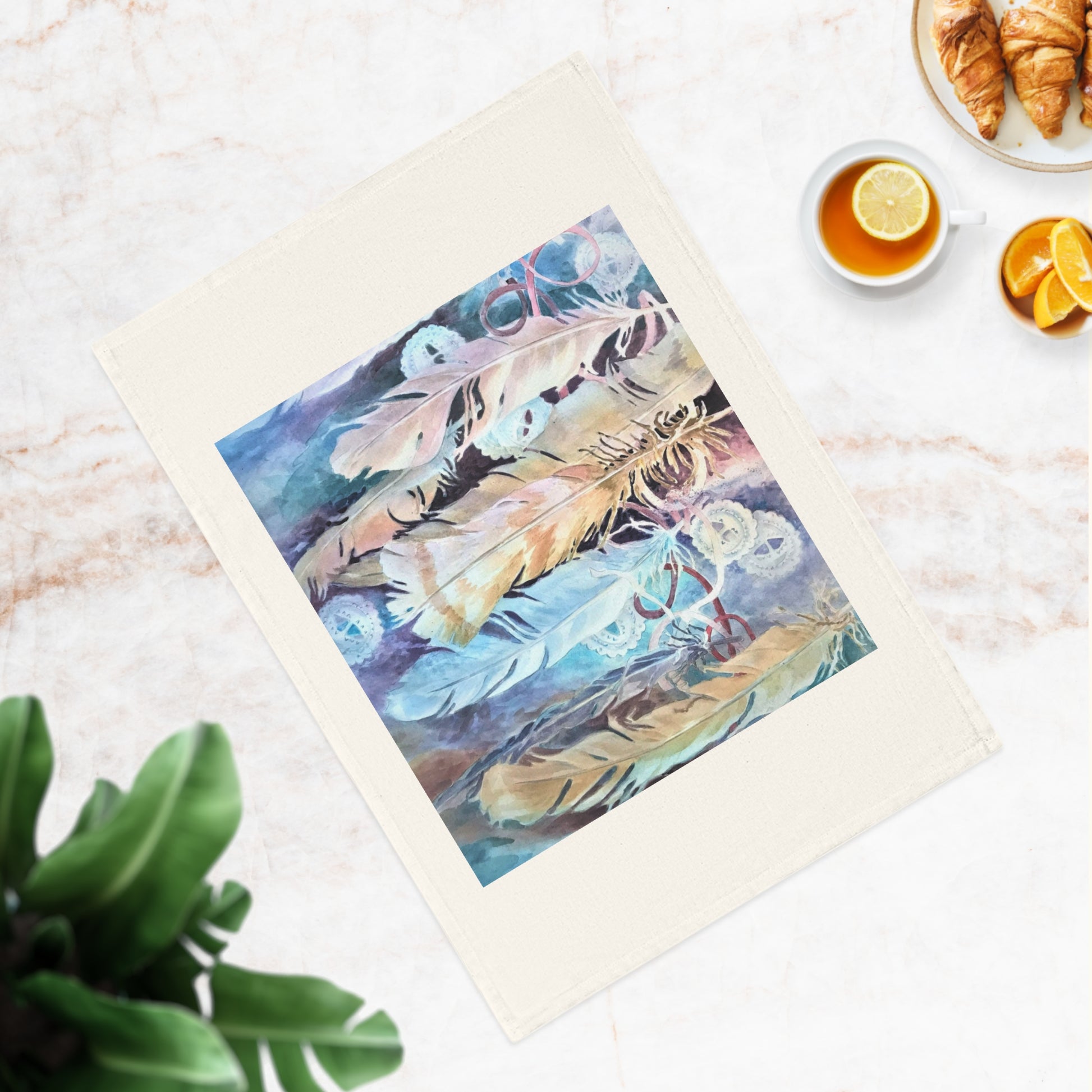 'Conchos Feathers' Organic Cotton Tea Towel I Original Artwork by American Artist Barbara Cleary | Barbara Cleary Designs