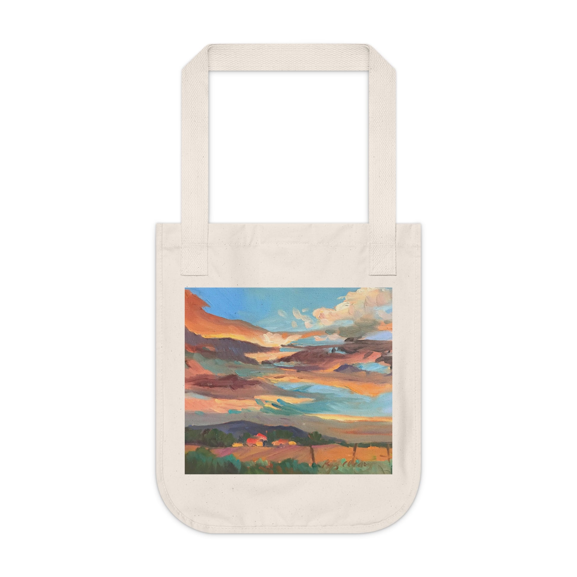 Organic Canvas Tote Bag with 'Fall Sky' I Original Artwork by American Artist Barbara Cleary (Fall Collection)