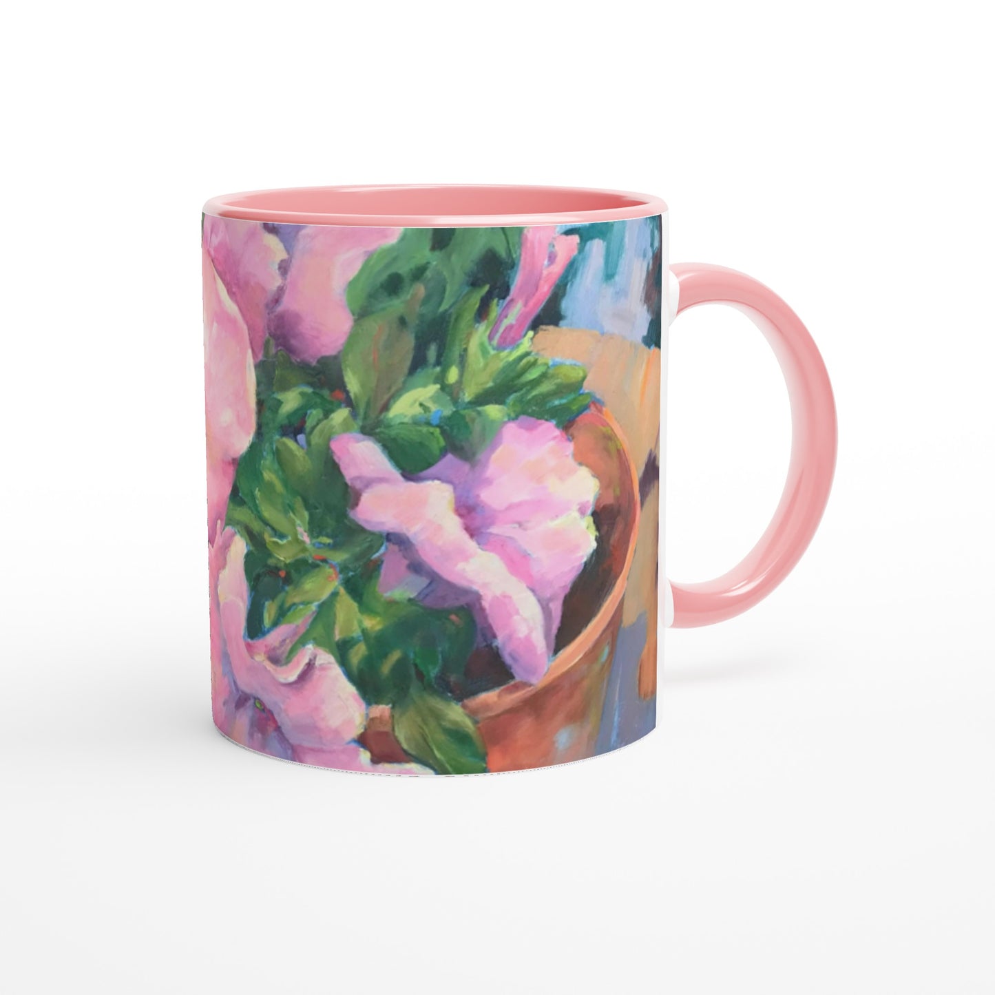 - Artistic Touch: Showcasing a glossy white finish with a colored rim, inside, and handle, this mug features Barbara Cleary’s “Pink Petals in Bloom”, a vibrant floral painting that highlights her skill in capturing the delicate beauty of blooming petals.