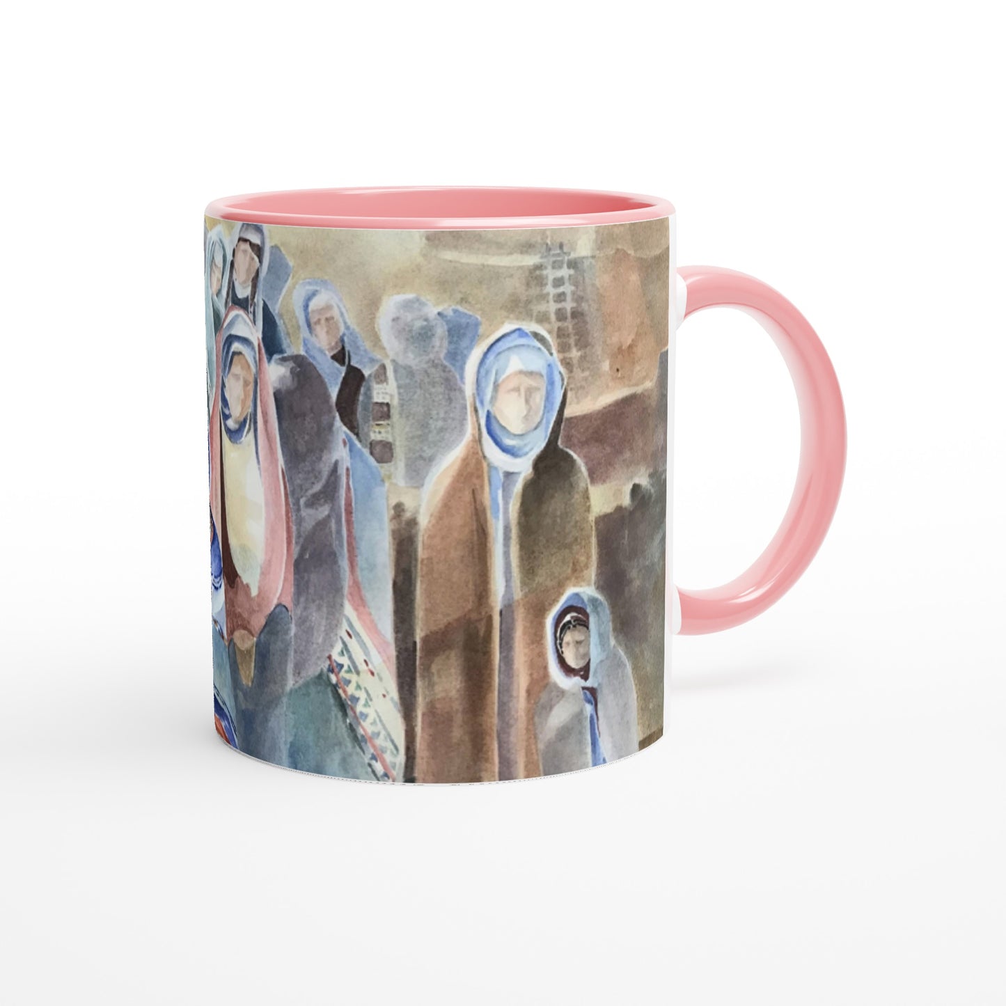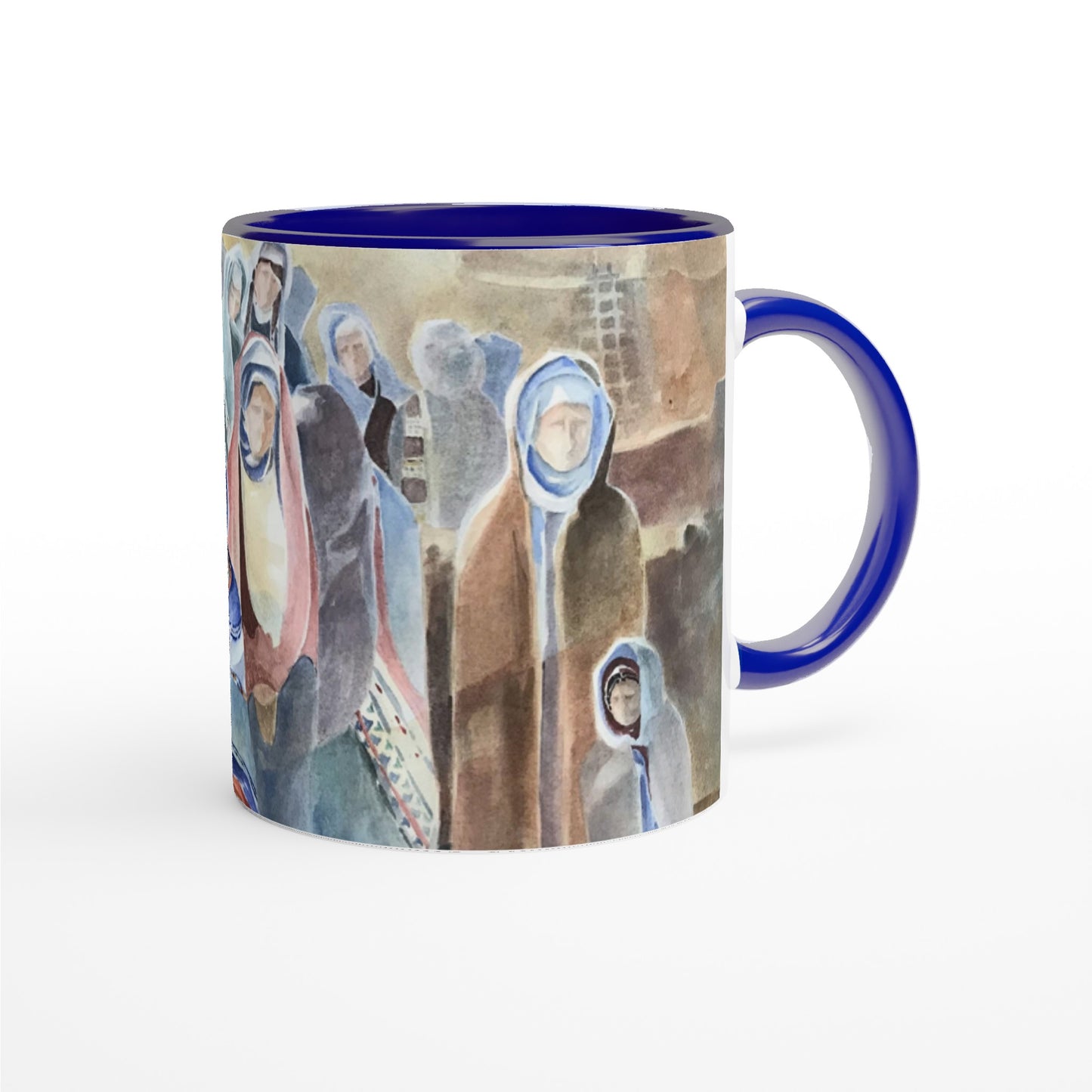 11oz White Ceramic Mug with Color Inside | Coffee Cup with 'Pueblo People' Southwestern Artwork by American Artist Barbara Cleary