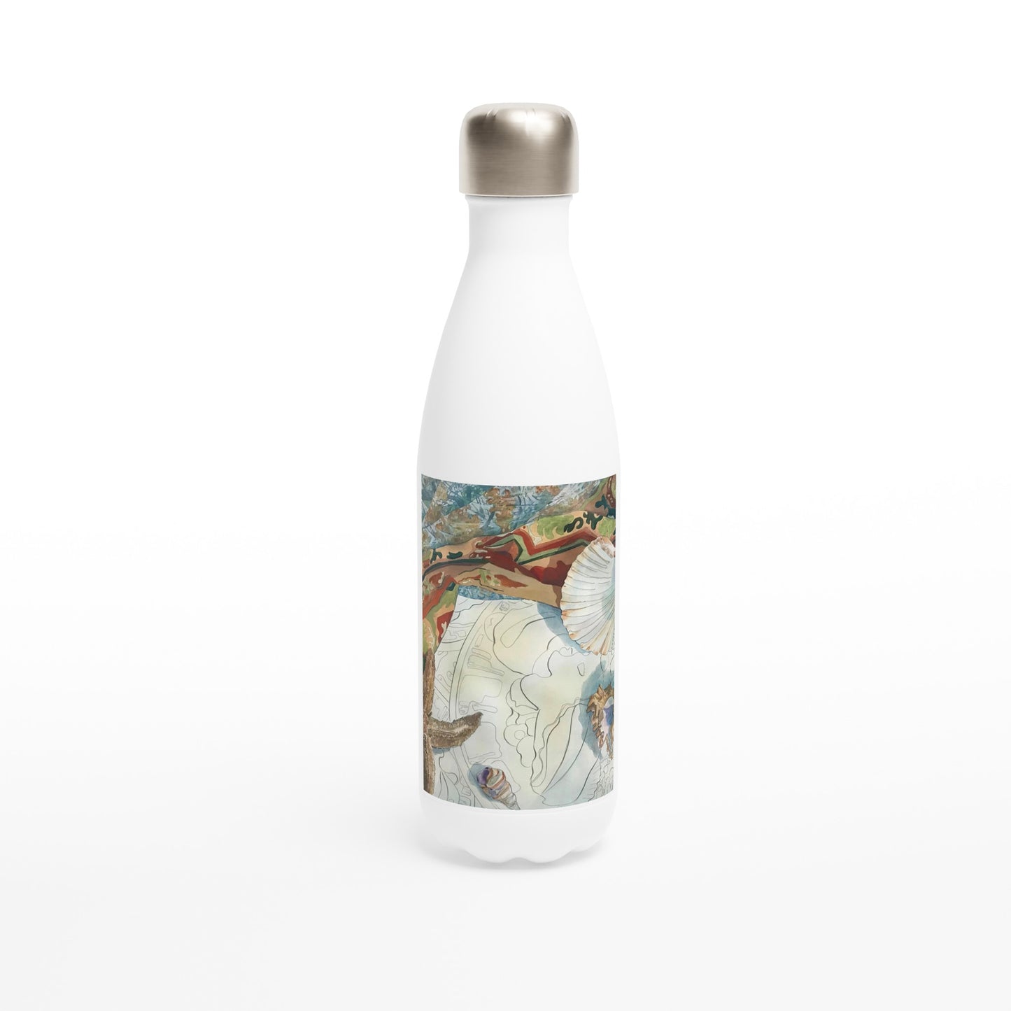 17oz White Stainless Steel Bottle with 'Shells' Watercolor Artwork by American Artist Barbara Cleary