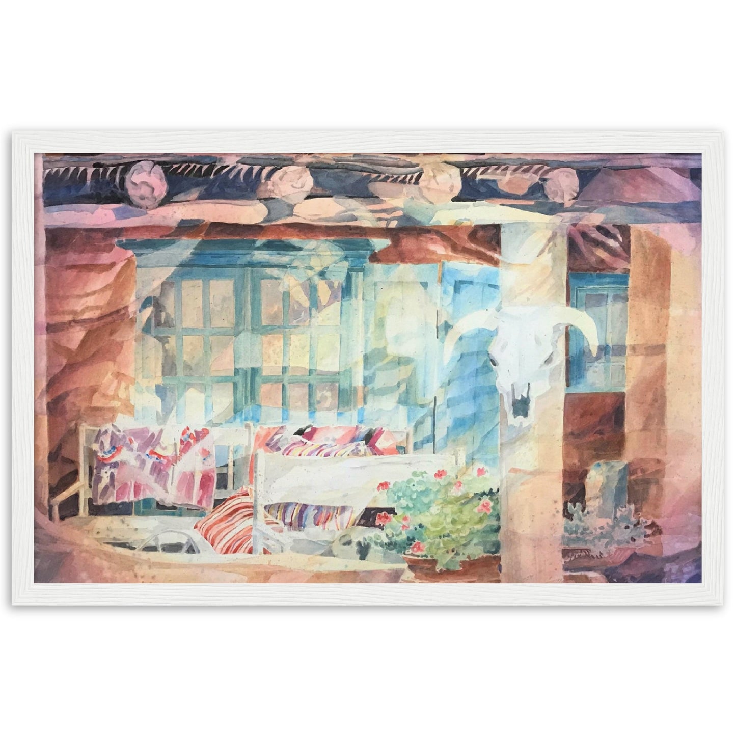 Our ready-to-hang wooden framed posters are sturdy, durable, and ready to hang instantly! This print of Barbara Cleary's watercolor painting "Southwestern Home" is made on our master's edition, archival museum-quality paper.