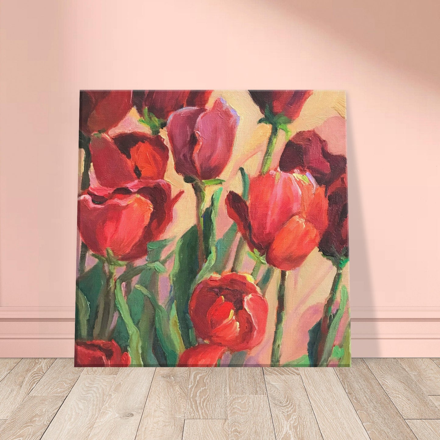 'Tulips' Floral I 12x12 inch Canvas Art Print I Original Artwork by American Artist Barbara Cleary I F19