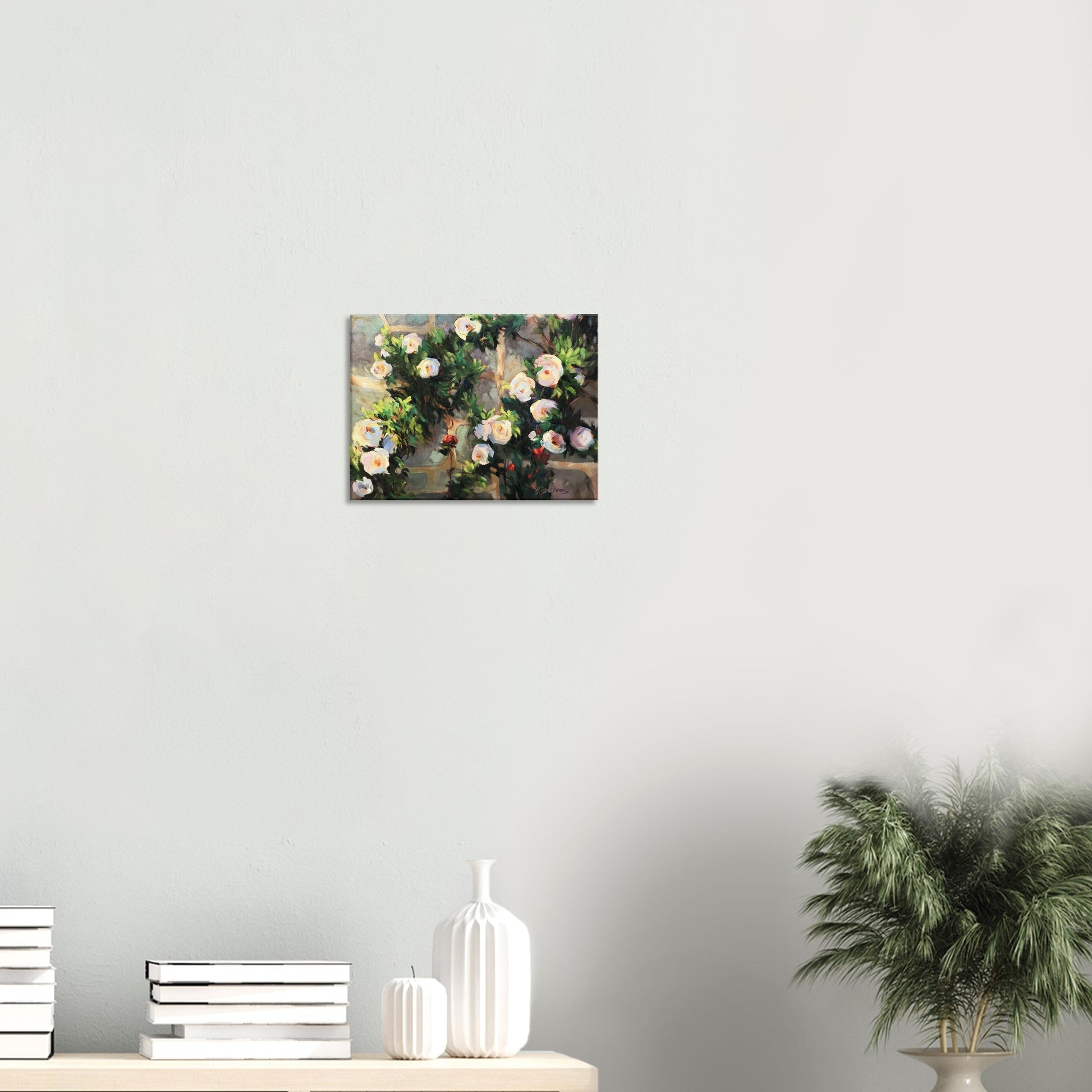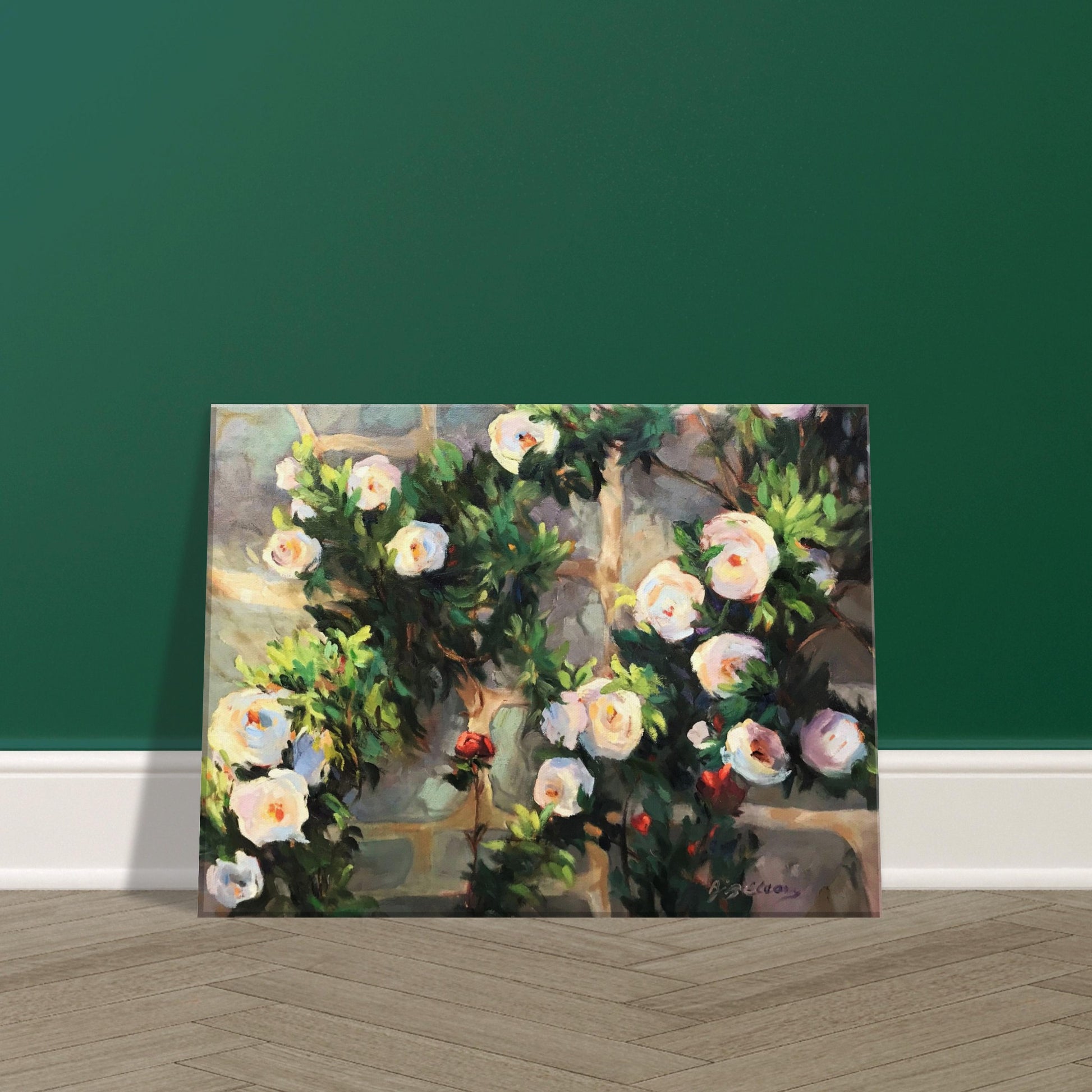 'Vining White Roses' Floral I 12x16 inch Art Print on Canvas I Original Artwork by American Artist Barbara Cleary